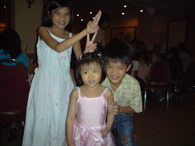 Sat morning attended a weeding at church, then stayed back for the final rehearsal of Children Mission Conference, and went to Cheryl's house party with my cousin (Jit Shin) at night which he just came back from singapore.
